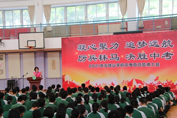 三年的汗水,千日的付出,終將結(jié)成六月的碩果。誓師大會(huì)上,老師們集體宣誓,要為學(xué)生們保駕護(hù)航精心備考;家長(zhǎng)們鄭重承諾,要成為孩子們最堅(jiān)定的支持者,全力以赴為孩子們做好一切與中考有關(guān)的后勤保障。最后,五桂山學(xué)校黨支部書記陳玉玲同志致辭,她希望同學(xué)們以百年黨史作為精神食糧激勵(lì)自己,少一些浮躁,多一些行動(dòng),以飽滿的熱情,堅(jiān)定的信念,迎難而上,以最佳的精神狀態(tài)和最充分的知識(shí)儲(chǔ)備迎戰(zhàn)中考。