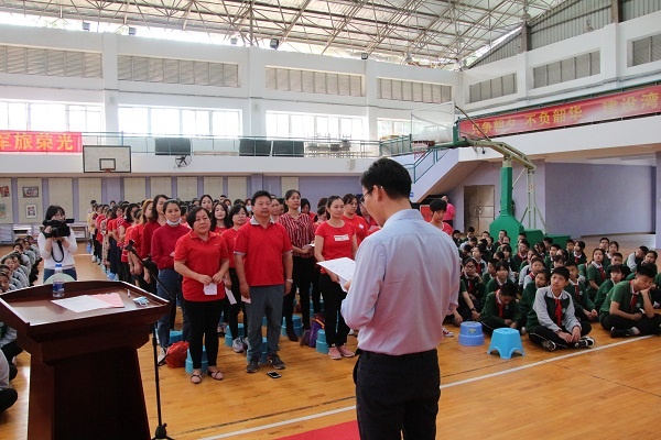 當(dāng)天上午,五桂山學(xué)校全體初三學(xué)生在老師、家長(zhǎng)和學(xué)弟學(xué)妹們熱烈的掌聲中精神抖擻地跑入會(huì)場(chǎng),各班依次喊出自己班級(jí)的口號(hào),點(diǎn)燃了現(xiàn)場(chǎng)的氣氛。