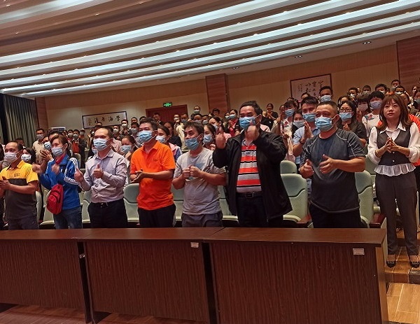 拍手操作為熱身游戲調(diào)動(dòng)了家長(zhǎng)們的熱情,氣氛一下子就活躍了起來(lái)。家長(zhǎng)們?cè)谠絹?lái)越快的節(jié)奏中調(diào)動(dòng)身體,舒緩勞累。鄒老師以家長(zhǎng)的身份與家長(zhǎng)們同感共情:為了孩子,我們付出了很多,但卻也收獲了許多的無(wú)奈和委屈……進(jìn)而引導(dǎo)家長(zhǎng)們要學(xué)會(huì)與孩子同感共情“讀懂青春期的孩子”,“因?yàn)榍啻浩谝欢谓k麗而特殊的時(shí)光,青春期就是一個(gè)獨(dú)立與依賴(lài)的沖突階段,青春期更是一個(gè)尋找身份認(rèn)同的時(shí)期,是充滿危機(jī)的時(shí)期……”