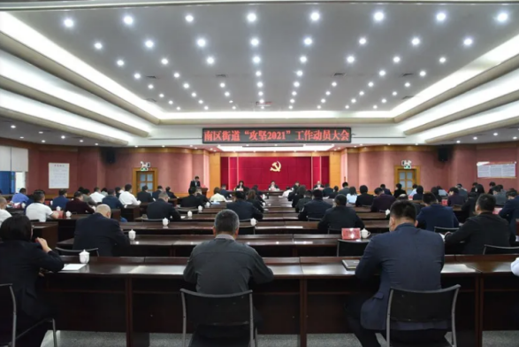 3月11日,南區(qū)街道召開“攻堅2021”工作動員大會,動員全街道上下一心、錨定目標(biāo)、苦干實干、攻堅克難,奮力實現(xiàn)第一季度開門紅、全年滿堂紅。