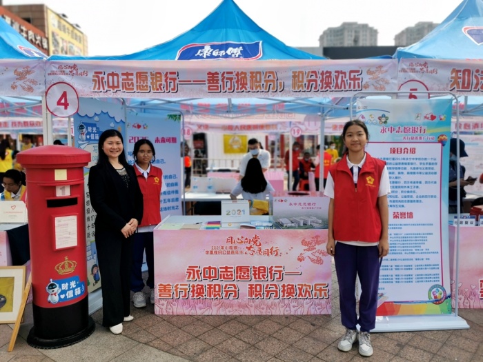 同時(shí),在小欖118廣場 “同心向黨,志愿同行”----2021年小欖鎮(zhèn)學(xué)雷鋒月公益嘉年華中,永中志愿銀行展示攤位門前熱鬧溫情,18名永中學(xué)生志愿者和節(jié)目表演同學(xué)更是心情澎湃,熱情高潮,他們忙碌中收獲溫暖,傳遞慈善愛心,傳遞志愿文化正能量。永寧中學(xué)志愿服務(wù)隊(duì)榮獲2019年中山市學(xué)雷鋒志愿服務(wù)先進(jìn)典型“最佳志愿服務(wù)組織”。