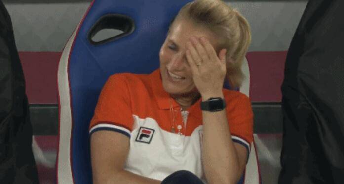 而在比賽中,面對(duì)如此輕松的一場(chǎng)大勝,荷蘭女足主帥在場(chǎng)邊不禁偷笑。