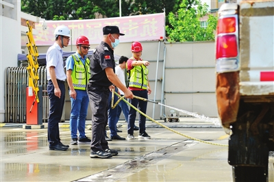 此外,一臺綠色的霧炮機在剛封頂?shù)拇髽菢堑住吧蠉彙?。隨著鼓風(fēng)機轟隆隆的聲響,霧炮機噴頭傾斜著呈45度角,朝著施工中的建筑噴射水霧,現(xiàn)場空氣明顯清新不少。“霧炮機可以移動,機動性更強,防塵降塵作用明顯?!?董旭東表示,在基坑開挖階段,項目調(diào)用了22臺霧炮機集中作業(yè),把揚塵污染控制到最低。