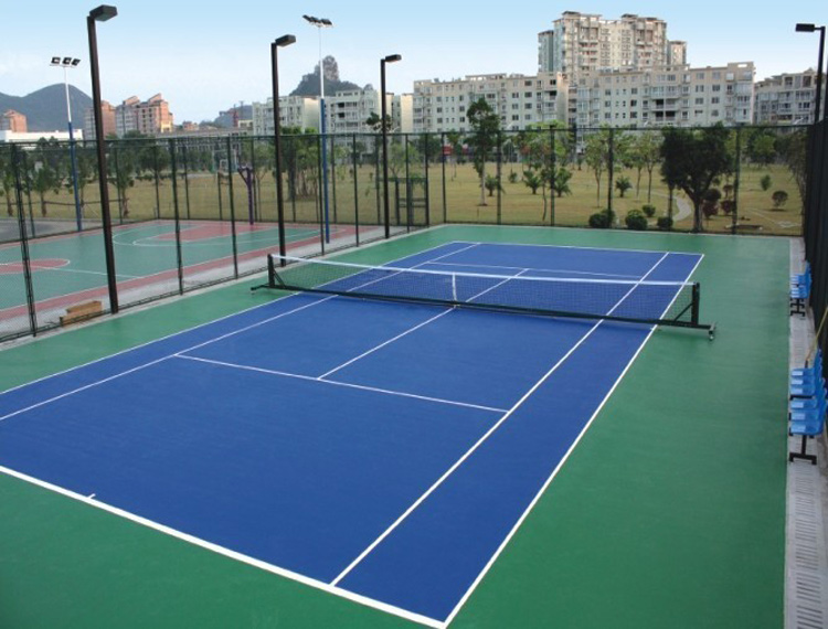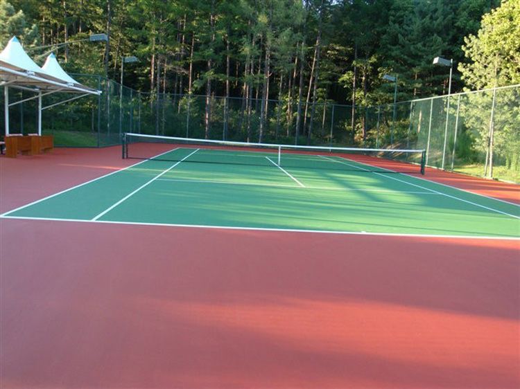材料簡介:丙烯酸樹脂球場(彈性丙烯酸網(wǎng)球場,硬地丙烯酸網(wǎng)球場)適用于專業(yè)選手比賽和訓練使用,由100%純丙烯酸乳液加入進口色料及助劑制成,完全符合環(huán)保要求,具有較好的耐磨性能,防水、防曬、防滑、可鋪設于室內(nèi)外瀝青或水泥面上??梢勒占由凹八呐浔日{(diào)整表面糙度。中級性能產(chǎn)品。