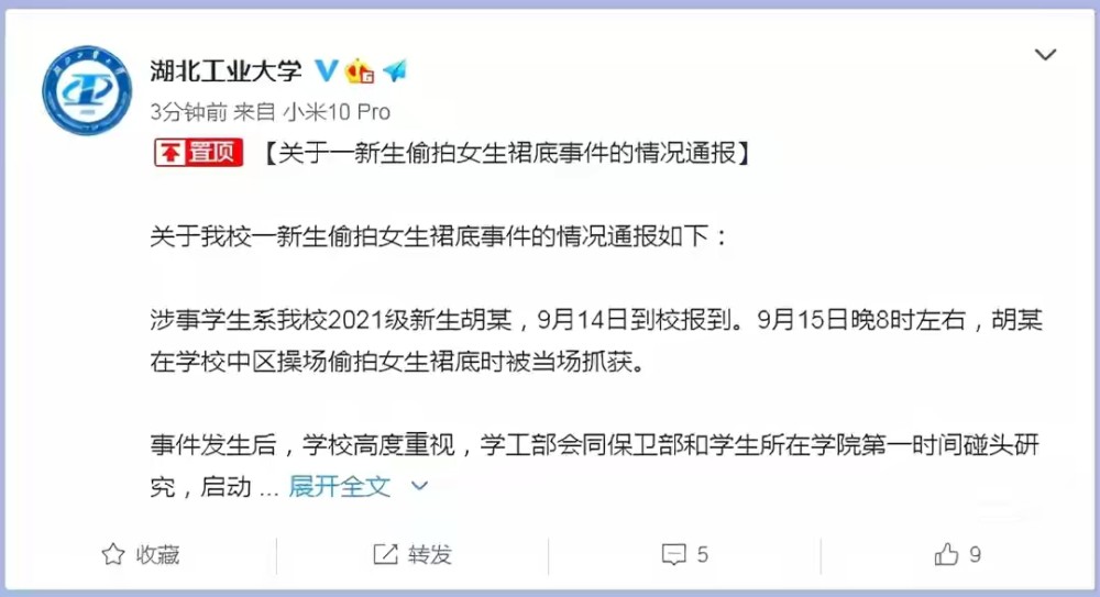 湖北工業(yè)大學(xué)對此事進(jìn)行處理并做出通知,經(jīng)過學(xué)校和學(xué)生及其家長溝通后,學(xué)校決定將該學(xué)生進(jìn)行勸退處理,并且學(xué)生在16日已經(jīng)離開學(xué)校。