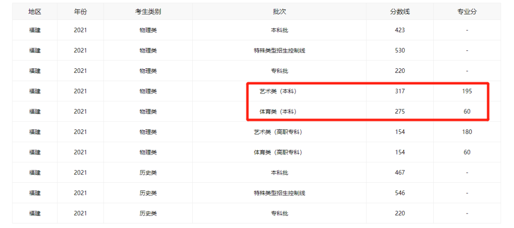 以2021年廈門高考分數(shù)線為例,理科最低分線為423分,藝術類分數(shù)線為317分,整整差了106分,也就是說,之前藝考生考318分就能跟424分上同等的本科院校。