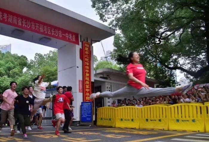 其中,令大家印象深刻的是一位“一字馬”飛躍出考場的女孩,她開心有活力的狀態(tài)也紛紛感染了考場前的眾人,這也使得大家對她的高考成績十分關(guān)注。