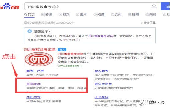 一、打開網(wǎng)站輸入四川省教育考試院,點擊自學考試