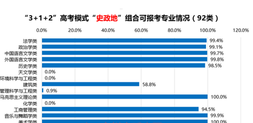在《普通高等學校本科專業(yè)目錄(2021)》中可以看到,本科專業(yè)一共有92大類700多個具體專業(yè),史政地組合可報考41大類300多個專業(yè),占比42%。