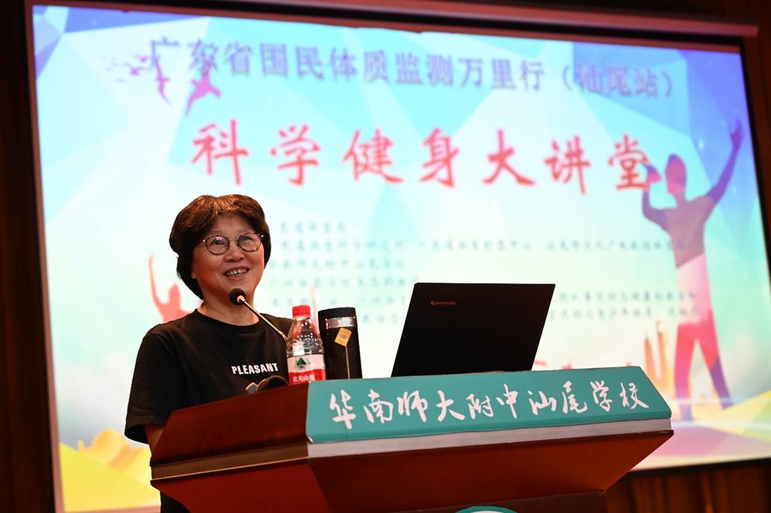 22日當日,華南師范大學附屬中學汕尾學校現(xiàn)場除了舉辦體質(zhì)測試,“提高健身意識,傳播健身知識”科學健身大講堂亦同時舉行舉行,近700名初一年級學生參與其中,是過去國民體質(zhì)監(jiān)測萬里行活動組織過的最大規(guī)模的一次大講堂,成為汕尾站的最大亮點。