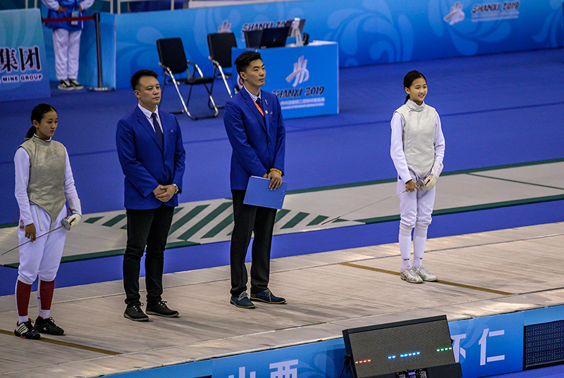 決賽當(dāng)日,記者這早早守候在懷仁市體育館,等待沈玨玲瓏的登場(chǎng),她將面對(duì)北京選手劉依陽(yáng)。賽前,雙方隊(duì)員就位,沈玨玲瓏笑容滿(mǎn)面,身材纖細(xì),斯文有禮,與“劍客”身份略有差異。記者了解到,擊劍是她的愛(ài)好,她也更愿意用愛(ài)好維持對(duì)擊劍的熱愛(ài)。