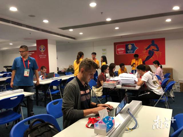 在這段報道世界杯的日子里,讓筆者印象最深的是66名服務于媒體宣傳部的志愿者以及來自市委宣傳部等部門的工作人員,他們分屬于7個區(qū)域,從媒體入口歡迎臺、工作間、看臺到攝影區(qū)、新聞發(fā)布廳、混采區(qū)再到餐飲區(qū)為各國媒體人提供全程幫助。