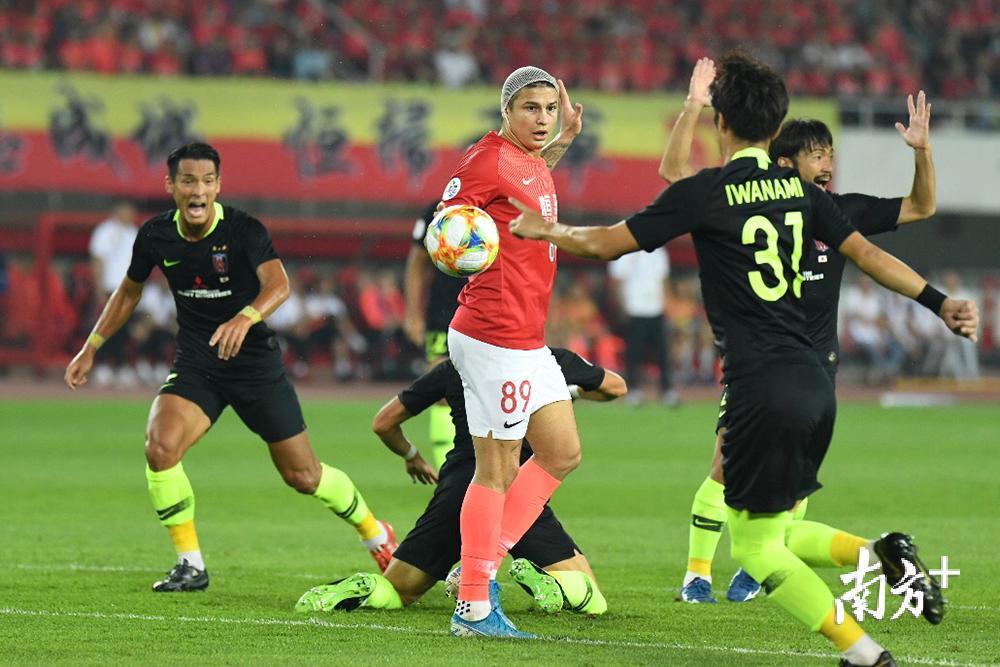 保利尼奧遭到對(duì)手夾擊。浦和紅鉆是亞冠防守最好的球隊(duì)之一,此前,浦和在亞冠賽場(chǎng)僅有一次凈負(fù)三球,恒大翻盤難度頗大。