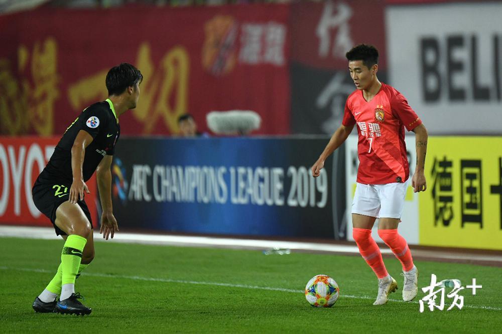 韋世豪面對(duì)防守球員,準(zhǔn)備突破。本場(chǎng)比賽,韋世豪所在的恒大左路相當(dāng)活躍,多次制造攻勢(shì)。