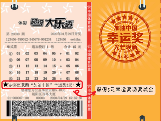 二是“加油中國”或“光芒煥新”幸運(yùn)獎,所有進(jìn)行追加投注的大樂透彩票,均有機(jī)會收獲“加油中國”或“光芒煥新”幸運(yùn)獎3元。在收獲幸運(yùn)的同時(shí),也讓我們?yōu)樽鎳佑?,期待?zhàn)勝疫情、“光芒煥新”的日子早日到來!