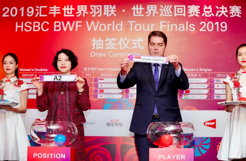中國隊(duì)在強(qiáng)勢項(xiàng)目女單、女雙和混雙實(shí)現(xiàn)了滿額參賽,在男單和男雙項(xiàng)目各有一人/對主力入圍。今天上午,廣州總決賽抽簽儀式在官方酒店花園酒店舉行,世界羽聯(lián)主席保羅·埃里克·霍耶、中國羽協(xié)主席張軍、廣州羽協(xié)主席林燕芬、雅典奧運(yùn)女雙冠軍楊維、中國隊(duì)頭號混雙鄭思維/黃雅瓊等出席儀式?;粢H手抽出男單諶龍與安賽龍同組,屆時(shí)B組將上演“雙龍會(huì)”。