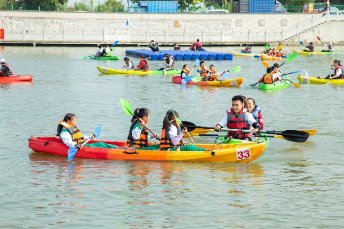 與此同時(shí),活動現(xiàn)場還同步舉辦了皮劃艇市民體驗(yàn)日活動。皮劃艇體驗(yàn)區(qū)域內(nèi)提供了安全又趣味豐富的各式活動,并配備專業(yè)教練進(jìn)行教學(xué)指導(dǎo),讓現(xiàn)場市民在體驗(yàn)起航前,掌握相關(guān)水上運(yùn)動知識。寬闊的水域上多艘競渡,潑水混戰(zhàn),形成了一條獨(dú)特的風(fēng)景線,引得岸上圍觀的市民也紛紛報(bào)名參與,感受秋日陽光下與珠江水共慶的魅力。