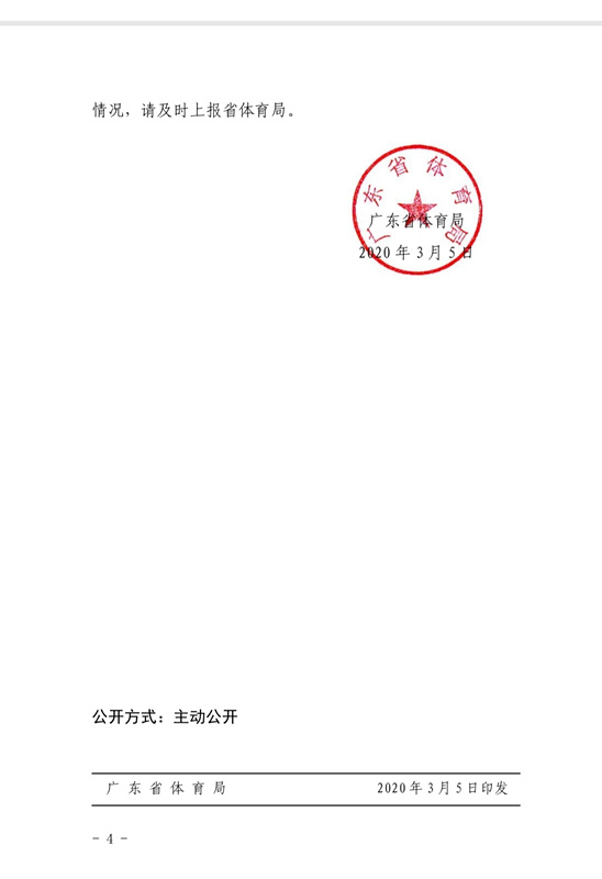 3月5日,廣東省體育局發(fā)布《廣東省體育局關(guān)于做好新型冠狀病毒肺炎疫情期間公共體育場(chǎng)館開放和體育賽事活動(dòng)舉行工作的通知》(以下簡(jiǎn)稱“通知”),按照“堅(jiān)持分區(qū)分級(jí)防控,落實(shí)屬地管理”的要求,中風(fēng)險(xiǎn)地區(qū)和低風(fēng)險(xiǎn)地區(qū)根據(jù)屬地防控工作安排,有序推進(jìn)公共體育場(chǎng)館開放和體育賽事活動(dòng)舉行的恢復(fù)工作。