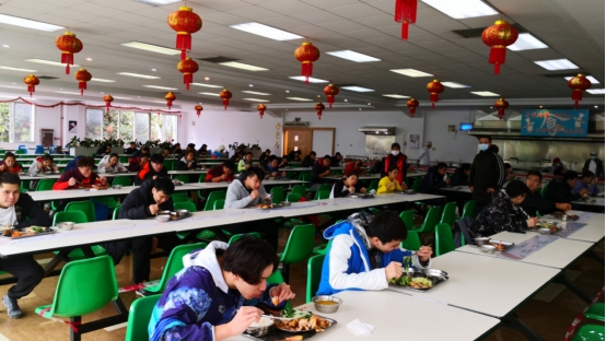 中心對進(jìn)入食堂就餐人員要求佩戴口罩,為就餐人員配發(fā)一次性手套,對各隊伍進(jìn)行分時段錯峰就餐,在就餐之前,還有專人監(jiān)督就餐人員餐前洗手。為盡可能降低飛沫傳播的風(fēng)險,食堂實行分菜制和人員保持寬松位置就餐,用餐時按指定座位單向就座,就餐人員間隔一個座位就餐,并建議就餐人員建議吃飯少說話。