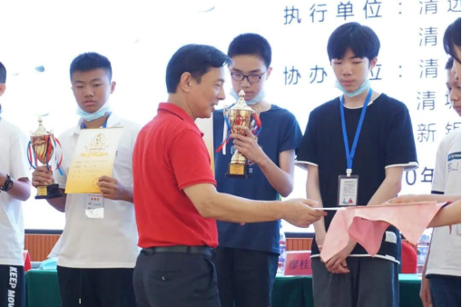 清遠(yuǎn)市文化廣電旅游體育局副局長成飛宇為棋手頒獎(jiǎng)