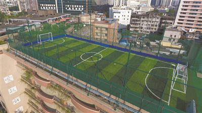 “大城市里的地面土地資源太緊缺,如果去太偏遠的地方建球場,不但交通不便,而且又遠離社區(qū)。我始終認為,要讓足球真正普及就必須不能脫離社區(qū),要令一家大小在家門口就能踢上球。從這個角度考慮,只能因地制宜向城市的高空發(fā)展。”陳亦明說,“我認為修建樓頂?shù)奶炫_足球場是一條可行的路子,雖然天臺球場目前大部分都是7人制或5人制的小場地,但從足球普及的角度來說,這樣的特色社區(qū)球場就足夠了!”