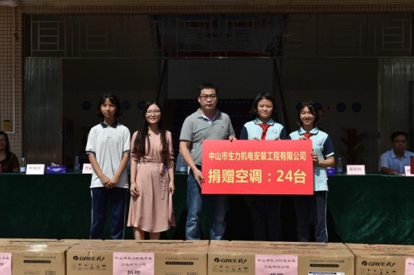 酷暑送清涼,濃濃助學(xué)情。7月5日,板芙中學(xué)舉行了中山市生力機(jī)電安裝工程有限公司空調(diào)捐贈儀式。板芙鎮(zhèn)黨委副書記、鎮(zhèn)長趙錫雄,中共中山市委統(tǒng)戰(zhàn)部副部長、中山市僑務(wù)局局長譚文輝,板芙鎮(zhèn)黨委委員李帝松,板芙鎮(zhèn)黨委委員周麗端,中山僑刊社主編溫國科,板芙鎮(zhèn)教育事務(wù)指導(dǎo)中心主任陳景新,中山市生力機(jī)電安裝工程有限公司董事長阮志平,總經(jīng)理林振炫,行政部經(jīng)理王江英,板芙中學(xué)初一級、初二級學(xué)生及全體老師800多人參加了儀式,儀式由副校長黃仁才主持。