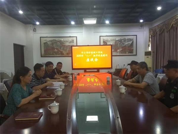 2019年8月1日是中國人民解放軍建軍92周年紀(jì)念日。7月29日,中山市沙溪理工學(xué)校開展慰問退役軍人活動,為學(xué)校退伍軍人送上節(jié)日祝福和關(guān)懷。在學(xué)校第一電教室,學(xué)校黨總支書記、主持全面工作副校長馮子川,黨總支副書記、工會主席、副校長盧永輝,副校長葉樹人,工會副主席、總務(wù)處主任石偉權(quán)與退伍軍人舉行了座談會,與他們聊家常、生活和工作,傳達(dá)黨中央對退役軍人的關(guān)心和溫情。