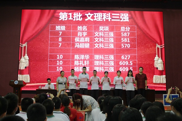 高三是高中學(xué)習(xí)的決勝階段,能進(jìn)入一所理想大學(xué)是每一位二中學(xué)子的夢(mèng)想。為振奮師生士氣,鼓舞信心,展現(xiàn)中山二中高三學(xué)子高考必勝的信心和勇氣,激勵(lì)同學(xué)們?cè)诟呷W(xué)習(xí)、備戰(zhàn)高考,2019年8月11日晚,中山二中組織高三年級(jí)師生在學(xué)校體育館舉行高考倒計(jì)時(shí)300天誓師暨統(tǒng)考總結(jié)表彰大會(huì),梁紅妹副校長(zhǎng),高三年級(jí)劉莉祥副主任、劉益民副主任,團(tuán)委書(shū)記李燦澤副主任,家委會(huì)代表曹國(guó)富先生、張燦軍先生,2019屆優(yōu)秀畢業(yè)生柳舟同學(xué)及高三全體班主任和學(xué)生參加了此次大會(huì)。