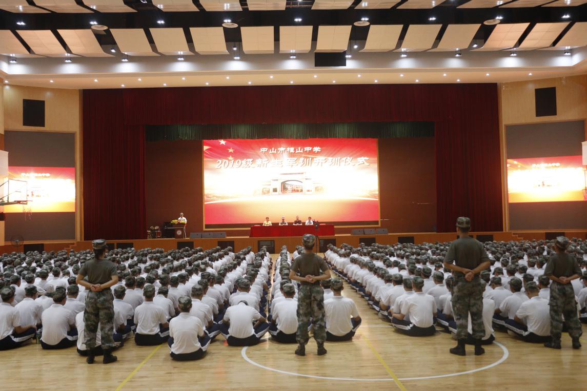 丹桂笑迎瑯環(huán)盛會(huì),蟾宮初入礪折新桂。2019年8月26日上午,中山市桂山中學(xué)在陳戈平體育館隆重召開(kāi)2019級(jí)新生軍訓(xùn)開(kāi)訓(xùn)儀式,三鄉(xiāng)鎮(zhèn)武裝部領(lǐng)導(dǎo)、軍訓(xùn)教官,桂山中學(xué)高宏副校長(zhǎng),高一年級(jí)張文映主任、陳建科主任、張會(huì)芬級(jí)長(zhǎng)以及全體班主任、新生參加了開(kāi)訓(xùn)儀式。本次儀式由陳建科主任主持。