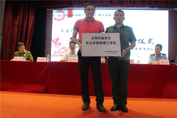 9月2日下午,中山市南朗(李東海)理工學(xué)校全體師生歡聚在學(xué)校禮堂,舉行2019—2020學(xué)年第一學(xué)期開學(xué)典禮暨與南朗專職消防隊文明共建單位簽約儀式。南朗鎮(zhèn)專職消防隊朱有悅副大隊長,黨支部書記馬延祥等領(lǐng)導(dǎo)和10多名消防戰(zhàn)士,南朗鎮(zhèn)南苑派出所張興強教導(dǎo)員,南朗(李東海)理工學(xué)校程少輝校長、王劍勤副校長、蘭澤融副校長及其他全體行政共同參加開學(xué)典禮暨簽約儀式。開學(xué)典禮由校團委副書記張浩東主持。