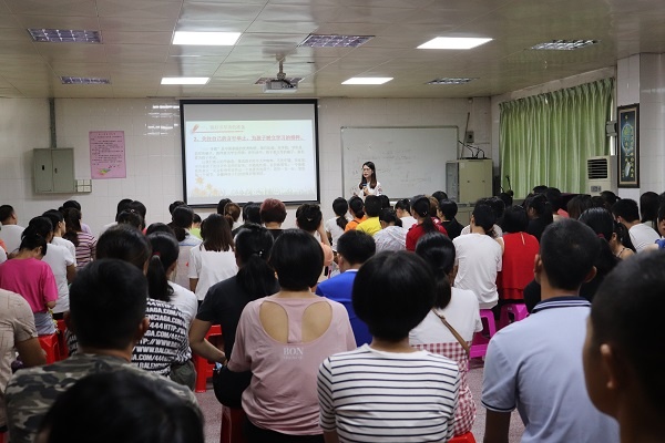 與此同時,在學(xué)校電教室還舉行了一年級新生家長學(xué)校培訓(xùn)活動。首先由梁綺琴校長向家長們表示了熱烈的歡迎和深深的祝福,她向家長們介紹了學(xué)校的行政團(tuán)隊(duì)和育人目標(biāo)、學(xué)校概況、教師團(tuán)隊(duì),并希望幫助家長了解學(xué)校的教育理念,在思想、行動上與學(xué)校達(dá)成一致,讓孩子們在求學(xué)之路上越走越好,共同支撐起孩子健康成長的一片藍(lán)天。