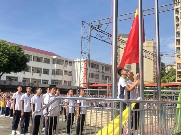 隨著激昂的國(guó)歌響起,五星紅旗冉冉升起,全體師生肅立注目,高唱國(guó)歌,向國(guó)旗致以崇高敬意。