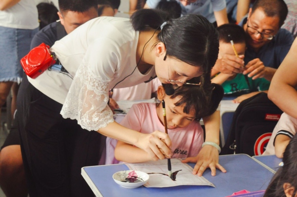 開筆禮的第一個環(huán)節(jié)是拜師禮,讓學(xué)生懂得感謝老師言傳身教,以師志為己志,施志行道,以謝師恩。第二個環(huán)節(jié)是朱砂開智,祝福孩子從此眼明心明,好讀書、讀好書。 第三個環(huán)節(jié)是擊鼓明志,在羅權(quán)鎏校長的帶領(lǐng)下,全體學(xué)生宣讀主題語,以此明志。第四個環(huán)節(jié)是開筆明理,一筆一畫寫好字、一生一世做真人。家長和孩子們先認真聆聽羅校長帶來校長第一課“寫人字”。接著家長同孩子共同完成“開學(xué)第一字”。
