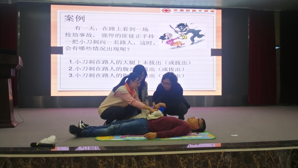 在培訓(xùn)中,紅十字會(huì)應(yīng)急救護(hù)培訓(xùn)師通過PPT課件講解、現(xiàn)場(chǎng)示范演示、指導(dǎo)學(xué)員演練等形式,向?qū)W員傳授了紅十字會(huì)基本知識(shí)、現(xiàn)場(chǎng)環(huán)境判斷、心肺復(fù)蘇術(shù)、止血、包扎、創(chuàng)傷及意外傷害救護(hù)、傷員搬運(yùn)等急救知識(shí)與技能,介紹了觸電、淹溺、電擊傷、中暑、氣道梗塞等突發(fā)情況的搶救技巧。學(xué)員熱情高漲,主動(dòng)進(jìn)行實(shí)操訓(xùn)練,積極與培訓(xùn)老師互相交流,現(xiàn)場(chǎng)學(xué)習(xí)氛圍濃郁。