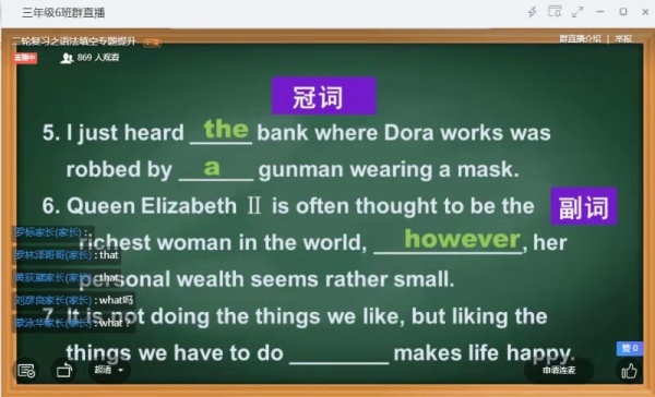 高三年級因高考日近,普遍采用了直播方式。“第一次直播,感覺同學(xué)們都很認(rèn)真啊?!辈芰钅堇蠋煘楦呷瑢W(xué)認(rèn)真的學(xué)習(xí)態(tài)度點贊。從2月10日開始學(xué)習(xí)之初,高三年級師生保持從從早上7:25分到晚上22:10分的正常教學(xué)秩序,毫不停歇的奮戰(zhàn)2020年高考。高一高二老師也創(chuàng)造條件上班會課,傾情盡力為學(xué)生們答疑解惑。心理老師為同學(xué)們呈上化解負(fù)面情緒的良方,幫助同學(xué)們克服居家學(xué)習(xí)的焦慮與不安。學(xué)校管理團(tuán)隊、教務(wù)處、技術(shù)保障部門都隨時在線,為桂山線上學(xué)習(xí)保駕護(hù)航。