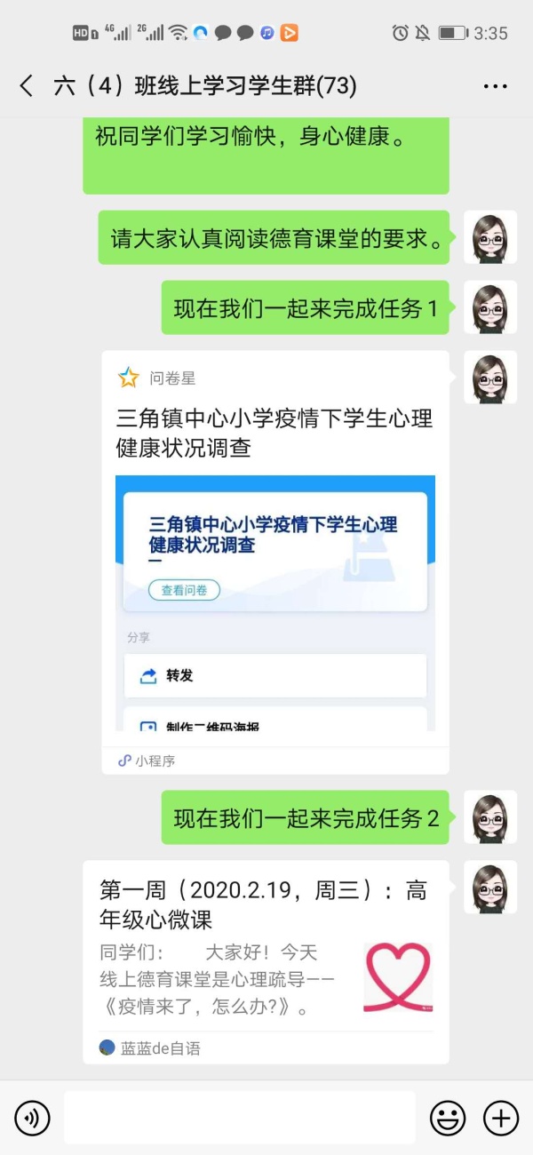 這個(gè)春節(jié),一場瘟疫席卷了華夏大地,每個(gè)中華兒女響應(yīng)國家號召,共同抗“疫”。三角鎮(zhèn)中心小學(xué)德育處關(guān)注到學(xué)生的心理健康,通過線上課堂緩解疫情下學(xué)生的心理壓力,減輕其負(fù)面情緒,調(diào)整心態(tài),以達(dá)到學(xué)生身心的健康成長的目的。