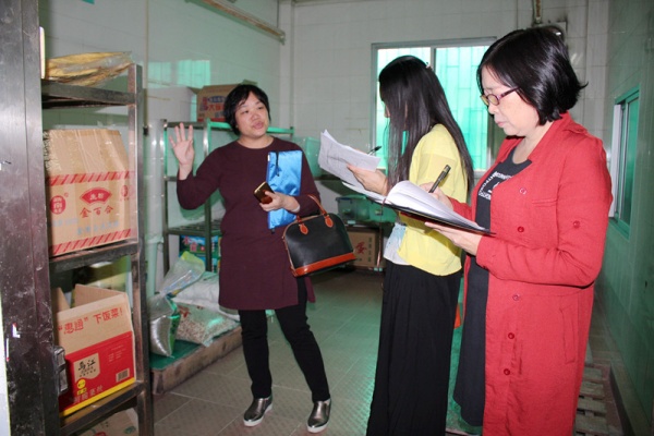 檢查組一行首先聽取吉安學(xué)校校長韋志海有關(guān)食品安全和衛(wèi)生防疫工作的匯報(bào),并查閱相關(guān)資料。接著對食堂及校園各個(gè)區(qū)域的衛(wèi)生安全情況進(jìn)行實(shí)地查看。其中檢查組重點(diǎn)檢查了食堂的食品及環(huán)境衛(wèi)生情況。詳細(xì)檢查了食堂食品存儲間、食品原材料加工間、食品烹飪間、飯菜分配間、食品留樣柜、餐具消洗各環(huán)節(jié)的運(yùn)行情況,并認(rèn)真查看了學(xué)校的食堂制度建設(shè)、采購記錄臺帳、索票索證資料、飯菜試嘗記錄、留樣記錄,詢問食堂相關(guān)管理人員等。吉安學(xué)校的食堂能夠建立各種規(guī)章制度,嚴(yán)格按照食品安全要求進(jìn)行生產(chǎn)操作,食品衛(wèi)生安全達(dá)標(biāo)。另外校園環(huán)境優(yōu)美、干凈,室內(nèi)物品擺放整潔,能做好通風(fēng)消毒工作。對于學(xué)校的食品安全和衛(wèi)生防疫工作,檢查組除了給予充分肯定,同時(shí)也提出了更高的希望和要求:1.食品安全無小事,希望學(xué)校要繼續(xù)堅(jiān)持做好每一項(xiàng)工作,落實(shí)好食品每個(gè)環(huán)節(jié)的操作規(guī)程。2.要加強(qiáng)疾病防控預(yù)防工作力度,完善疾病防控工作制度。3.要做好設(shè)施設(shè)備的更新。
