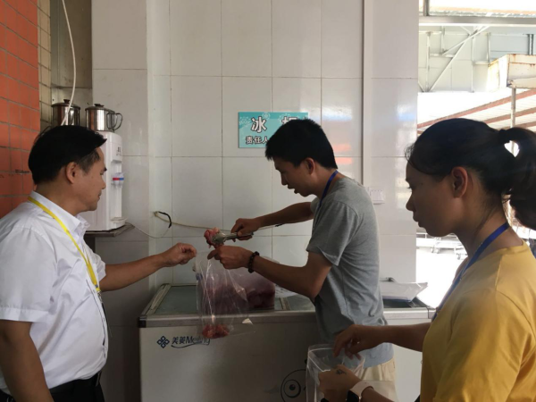 2018年10月8日中午,中山市食品藥品監(jiān)督管理局委托工作人員劉求等一行三人來(lái)到小欖吉安學(xué)校對(duì)食堂食品進(jìn)行抽樣檢查。該校校長(zhǎng)韋志海、后勤處羅錦信、魏勤英兩位主任接待了檢查組并陪同檢查。