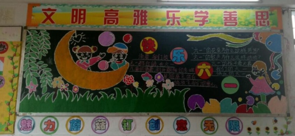 你瞧!這是吉安學(xué)校低年段開展的以“我的節(jié)日我做主”為主題的班級黑板報。各班圍繞“六一”的主題,推出了一塊塊主題鮮明、設(shè)計精美的黑板報。一塊塊黑板,在老師的指導(dǎo)下,在學(xué)子們的妙筆下,變成了一幅幅優(yōu)美的畫卷。一幅幅栩栩如生的繪畫、一個個鮮活的故事、一首首動聽的兒童詩歌,展現(xiàn)在師生的面前,為班級增添了濃濃的節(jié)日氣氛!