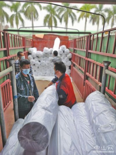 三角鎮(zhèn)企業(yè)國泰染整正在給國際服裝大品牌發(fā)貨供應(yīng)高端布料。