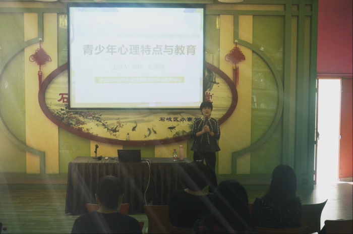 市華僑中學張環(huán)老師在《青少年心理特點與教育》主題培訓中,引導教師重視和加強對青少年的心理健康教育。