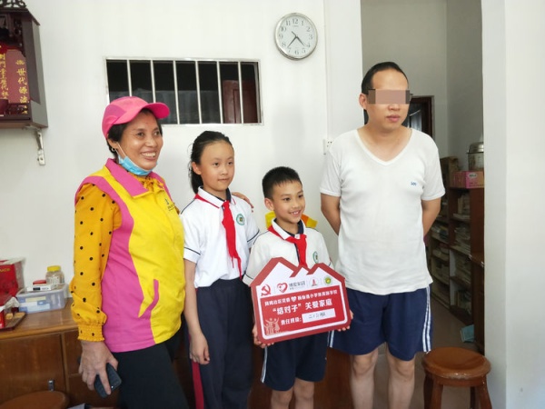 啟動儀式結(jié)束后,各班級代表在社區(qū)工作人員、愛心志愿服務(wù)隊的帶領(lǐng)下,開展第一次慰問活動,并為各個家庭掛上關(guān)愛牌。