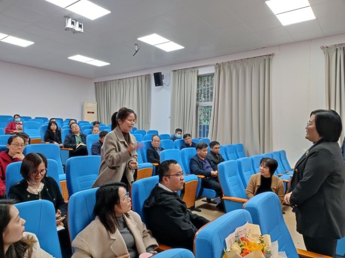 在一片熱烈的掌聲中,語(yǔ)數(shù)英分別開(kāi)展了教學(xué)討論會(huì)。在會(huì)議中,老師們積極發(fā)表自己的意見(jiàn),互相交流、探討,劉瑜老師,陳少丹老師、唐海鳳老師也分別傳遞了自己的教學(xué)理念、教學(xué)方法,給予了石壩中心小學(xué)老師們自己教學(xué)的經(jīng)驗(yàn)。為了更好地在教育教學(xué)的策略上幫助石壩中心小學(xué),陳立主任根據(jù)石壩中心小學(xué)的實(shí)際情況,為老師們帶來(lái)《如何落實(shí)低年級(jí)教育教學(xué)的策略》主題講座。陳立主任向老師們介紹了體育路學(xué)校的教育宗旨、教學(xué)成果,同時(shí),他根據(jù)學(xué)?!叭我惑w目標(biāo)導(dǎo)向”,認(rèn)為小學(xué)低段應(yīng)注重培養(yǎng)學(xué)生的興趣+習(xí)慣+思維。他講道,低年級(jí)是培養(yǎng)孩子學(xué)習(xí)興趣的關(guān)鍵期,也是培養(yǎng)良好學(xué)習(xí)習(xí)慣的關(guān)鍵期。對(duì)于低年級(jí)孩子學(xué)習(xí)思維的培養(yǎng),要引導(dǎo)自主探究,拓展學(xué)生思維的廣度;巧妙設(shè)置問(wèn)題,發(fā)掘?qū)W生思維的深度;尊重學(xué)生,培養(yǎng)學(xué)生思維的獨(dú)創(chuàng)性,讓教育教學(xué)有實(shí)效。在陳立主任的分享后,老師們都頗有收獲。針對(duì)低年級(jí)教育教學(xué)的策略,陳立主任和石壩中心小學(xué)的老師們繼續(xù)深入討論,仔細(xì)研討,共同為培育孩子學(xué)習(xí)興趣、習(xí)慣、思維出謀劃策。