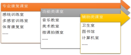 | 環(huán)境設(shè)施 | 針對學(xué)生的個體需要,設(shè)有感統(tǒng)室、多感官室、體康室、美術(shù)室、心理咨詢室等場室,功能完善。