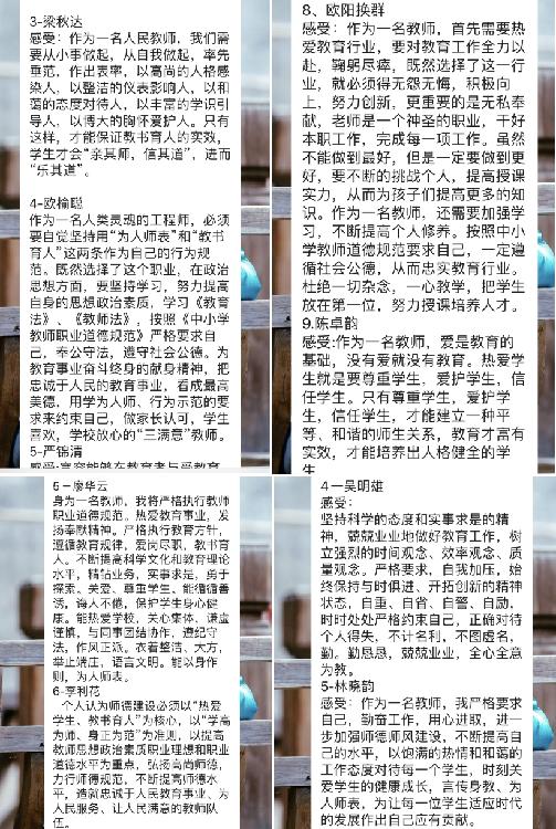 在本次的線上集體學習中,通過對8起典型問題的了解和反思,龍江城小全體教師深刻認識到師德“紅線”不可逾越。在嚴守“紅線”的同時,要謹記自己肩負的職責和使命,不斷錘煉教育報國之志,時刻堅守為黨育人、為國育才初心,自覺堅守精神家園、堅守人格底線,率先垂范、以身作則,培養(yǎng)擔當民族復興大任的社會主義建設者和接班人。