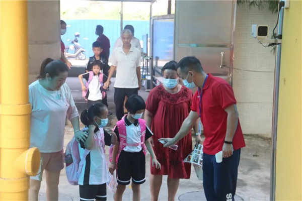 8月28日上午,校領(lǐng)導(dǎo)和老師們在門口迎接新生,孩子們錯峰上學(xué),老師給每位進(jìn)校的學(xué)生測量體溫、洗手消毒,指引家長帶著孩子找到自己所在的班級。就這樣,孩子們懷著激動、好奇的心情踏入校園、走進(jìn)教室,開啟了自己的小學(xué)生活之旅。