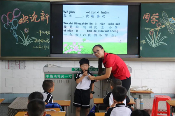 在班主任和各科老師的指導(dǎo)下,師生之間互相熟悉。班會課上,新生開始學(xué)習(xí)《梁釗林紀(jì)念小學(xué)課堂規(guī)范》,了解《言行知禮》的各種行為規(guī)范和禮儀,學(xué)會日常禮貌用語。