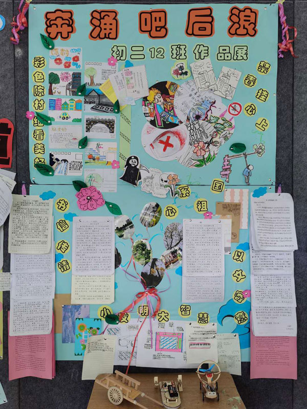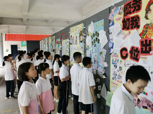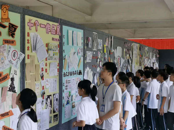 本次暑假 “十個一”作品展示活動項目有:1、“書信立志 不負韶華”。2、“小小發(fā)明家”。3、“愛祖國,誦經(jīng)典”――中華傳統(tǒng)文化經(jīng)典誦讀。4、“疫情當下――我可以做的是 ”征文活動。5、“勞動一夏”。6、“走出校園,體驗社會”實踐調(diào)查。7、“禁毒無小事,常掛心上記”漫畫作品。8、“印象陳村”明信片制作。記錄陳村鎮(zhèn)情,感受陳村發(fā)展。9、“陳村色彩”主題攝影。10、讀一本好書,創(chuàng)書香校園。本次暑假“十個一”活動形式多樣,內(nèi)容豐富,給同學們提供了一個鍛煉與展示的平臺,得到了同學們的積極響應。課間期間,初一、初二級的同學們有序地參觀了暑假“十個一”作品展覽。濃墨重彩的書畫作品,心靈手巧的手工佳作,精心排版的板報,讓同學們大開眼界,情不自禁地發(fā)出陣陣贊嘆。每年的暑假“十個一”作品,同學們都能夠別出心裁,充分發(fā)揮豐富的想象力和創(chuàng)造力,用心血凝聚成勞動的成果。