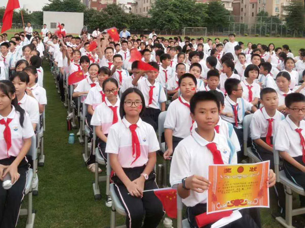 “紅歌代代傳,歌聲頌祖國”。在2020年國慶節(jié)到來之際,為豐富校園文化生活,活躍校園氣氛,增強學生的愛國主義情感,2020年9月29日下午三點,陳村鎮(zhèn)初級中學初一級舉辦了“唱響時代紅歌,鼓舞抗疫精神”的班級合唱比賽。謝文忠校長、梁兆倫副書記、李日和副校長、汪立云副校長、王旭東主任、陳廣紅副主任、霍笑霞副主任、林鵬副主任全程觀看了比賽。鐘珊珊老師、吳正愛老師、吳仕林老師擔任評委出席了比賽現(xiàn)場。初一11班李慧妍、初一12班鄭羿同學擔任比賽主持。