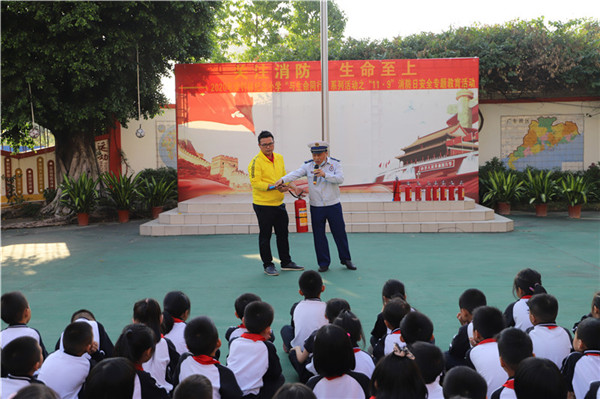 全國(guó)消防日適逢星期一,黃家強(qiáng)主任結(jié)合消防安全進(jìn)行國(guó)旗下講話。黃主任指出,同學(xué)們課間應(yīng)該文明活動(dòng),注意安全。